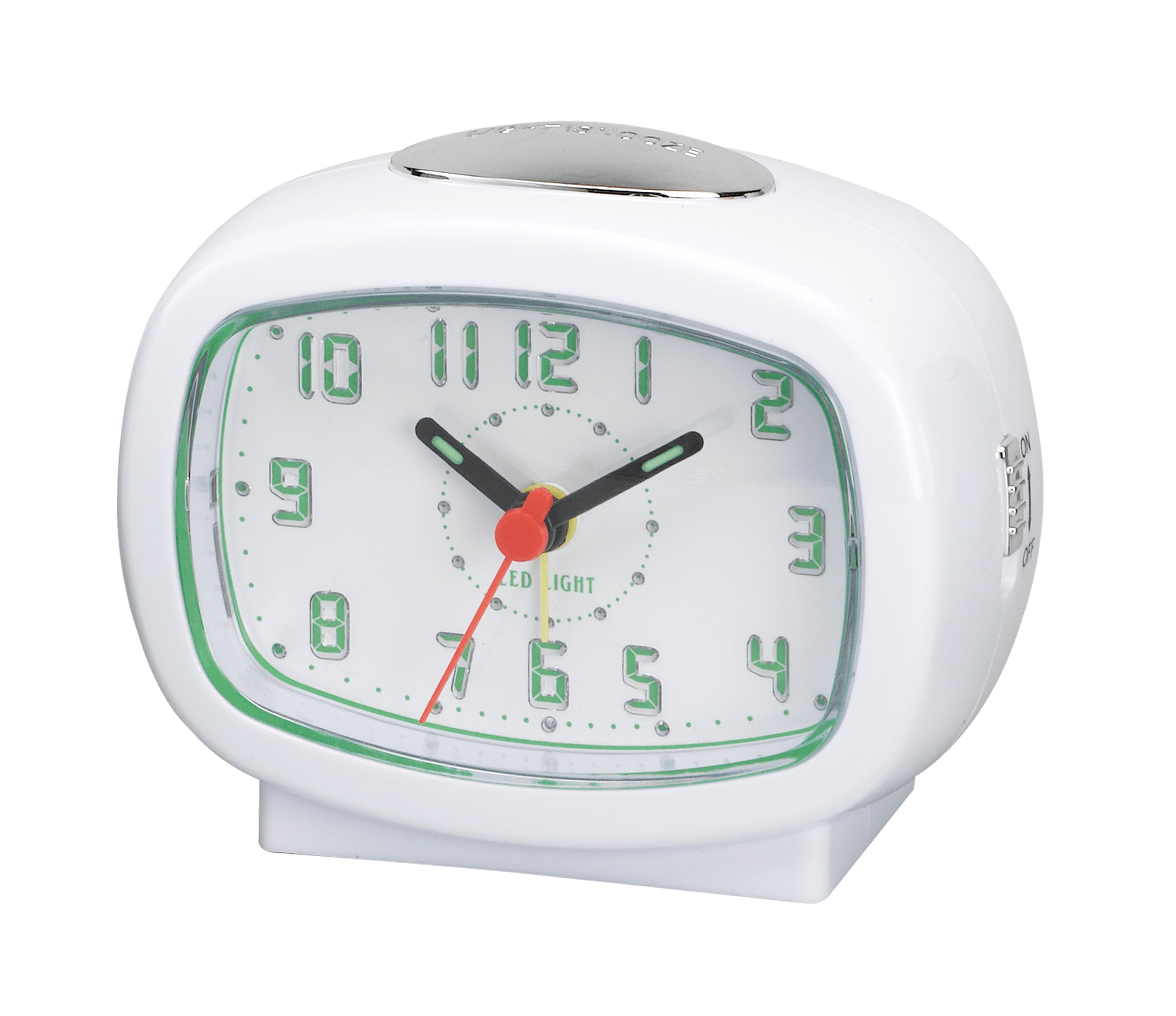 Analogový netikající tichý budík JVD SRP540.1 se zeleným LED podsvícením