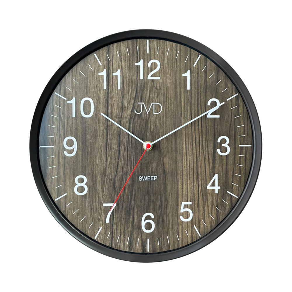 JVD Netikajcí analogové tiché nástěnné hodiny v imitaci dřeva JVD HA17.3