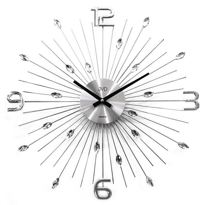 Moderní a neobvyklý sluňíčkový design quartzových hodin značky JVD, který kombinuje kov a zrcátka dokáže oživit každý interiér.