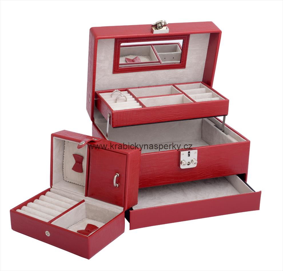 - Klenoty Budín Luxusní třípatrová červená šperkovnice SP-577/A7