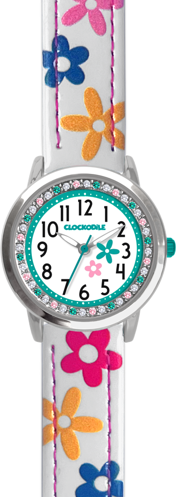 - CLOCKODILE Bílé náramkové dívčí dětské hodinky s kamínky a kytičkami CWG5202