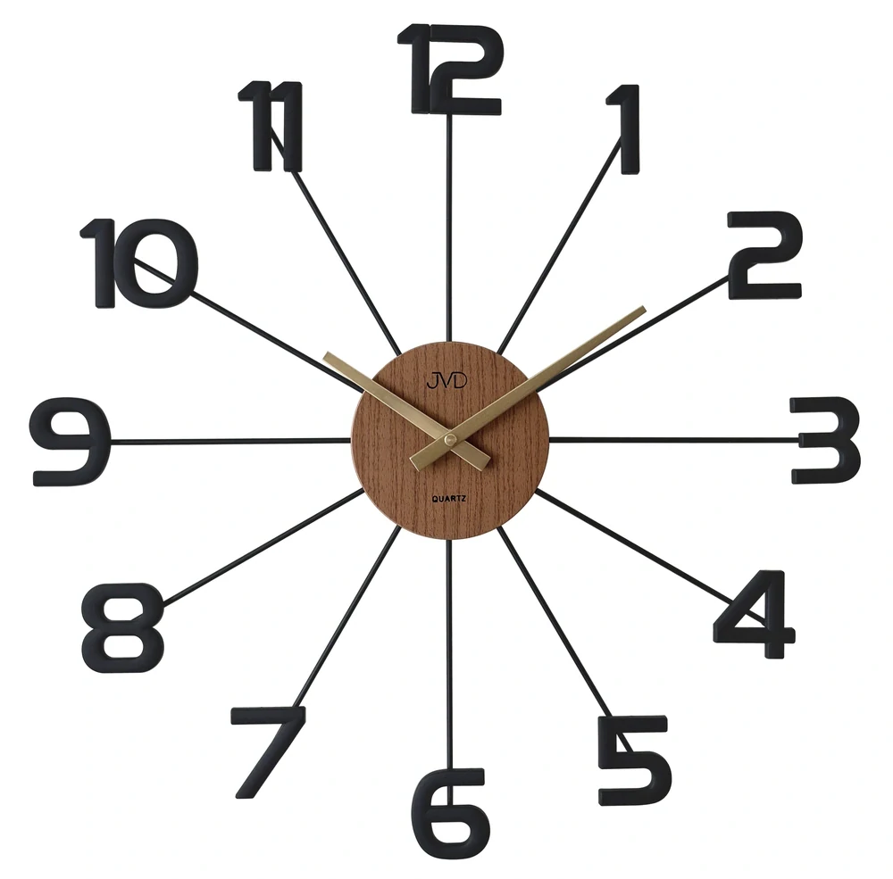 JVD Designové kovové černo-hnědé paprskovité hodiny JVD HT118.1