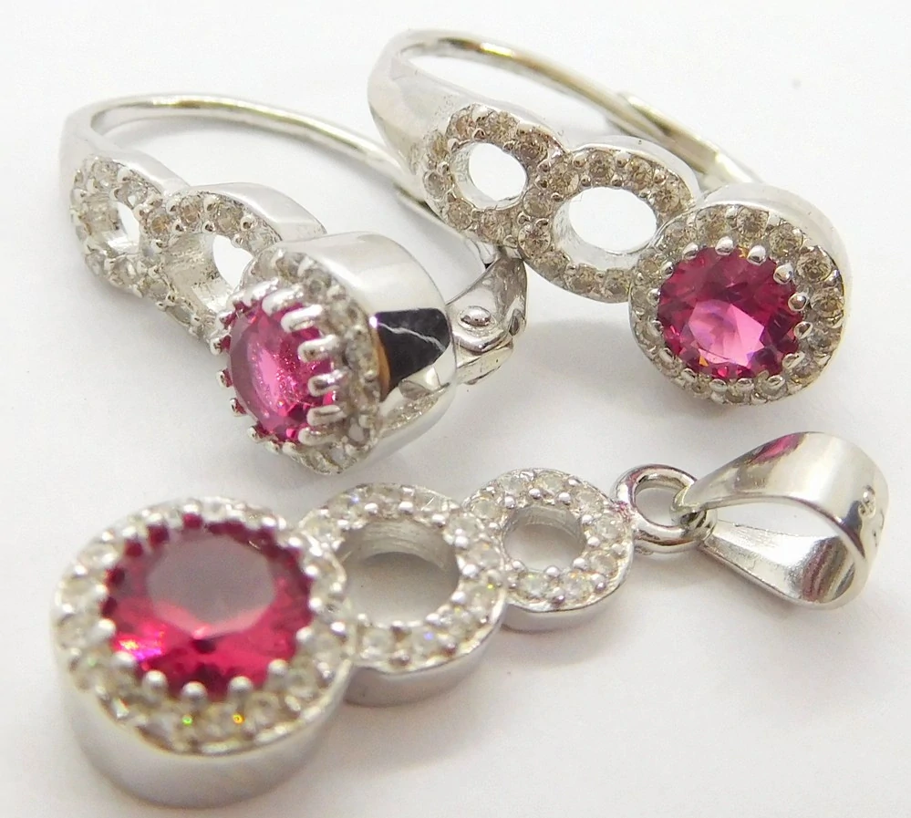 Klenoty Budín Dámská mohutná stříbrná souprava se zirkony a červenými rubíny ryz. 925/1000 (náušnice + přívěsek) 031010800001