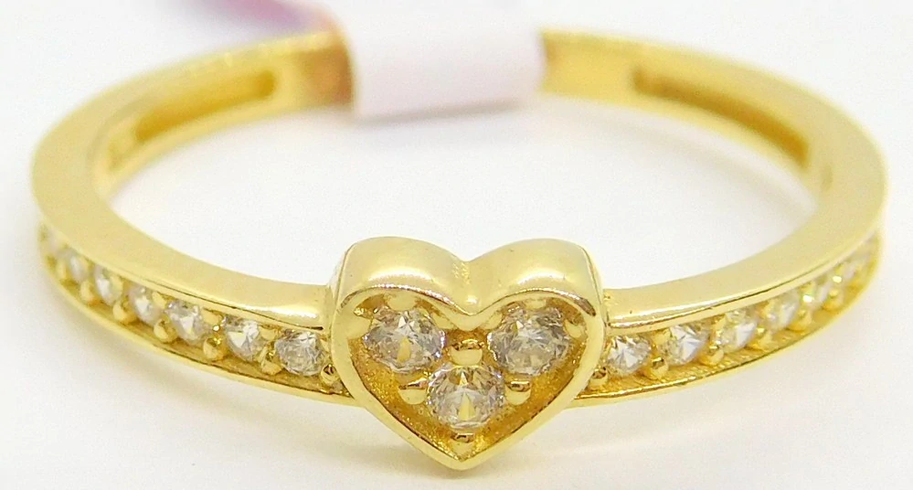 - Klenoty Budín Dámský zlatý zásnubní srdíčkový prsten se zirkony pro zamilované 585/1,35gr vel. 52 HK1207