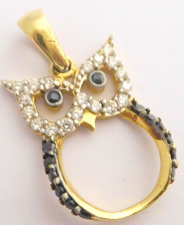 - Klenoty Budín Zlatý přívěsek posetý zirkony a černými zirkony - sovička 585/1,59gr HK3118