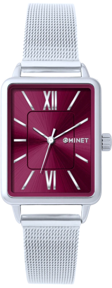 - MINET Náramkové stříbrno-vínové dámské hodinky SIENA se stříbrným ocelovým řemínkem MWL5400
