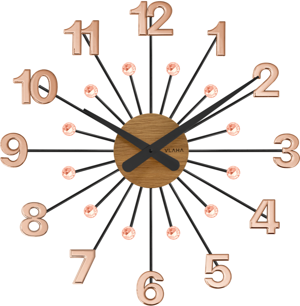 VLAHA Dřevěné Rosegold-černé hodiny s kameny DESIGN vyrobené v Čechách VCT1085